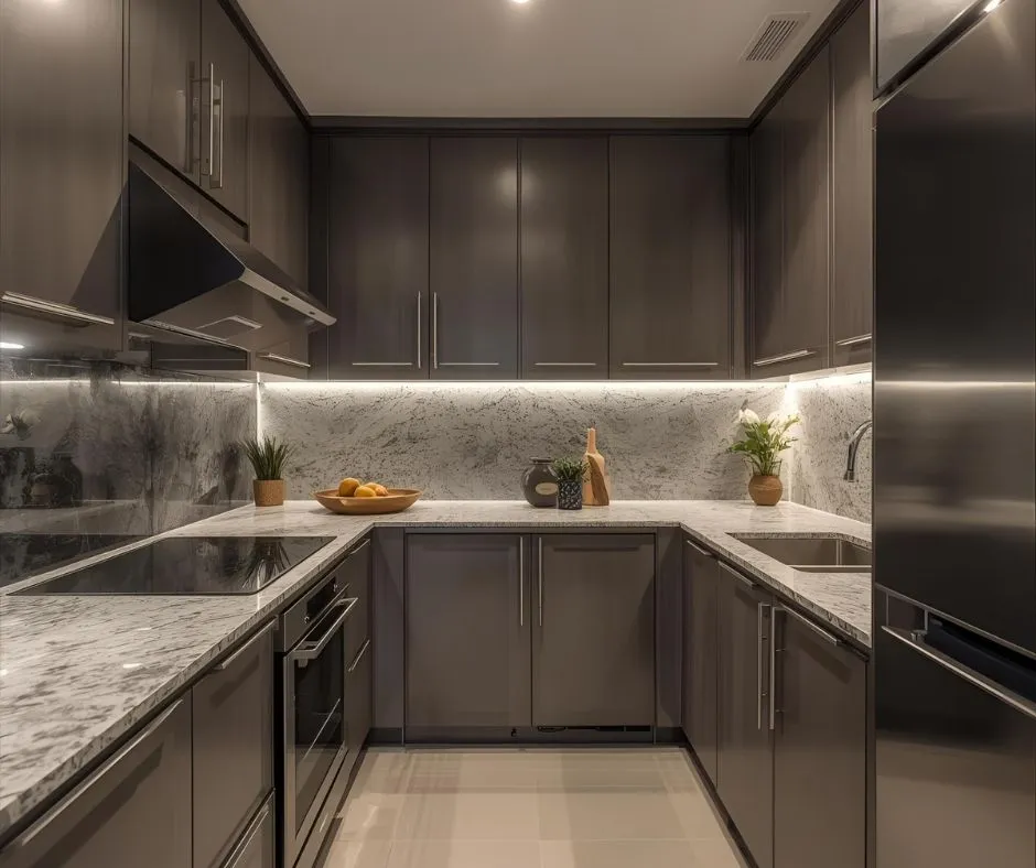 U-Shape Kitchen: Offers plenty of storage and counter space, making it perfect for larger kitchens where efficiency meets style.